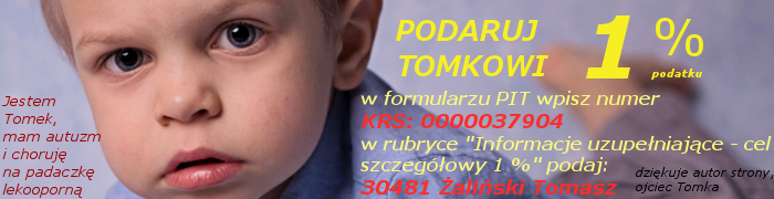 Jestem ojcem Tomasza - wspaniałego chłopca z autyzmem. Tomek ma również padaczkę lekooporną, ale dzielnie stara się funkcjonować w naszym, jakże dla niego niezrozumiałym, świecie. Jemu też dedykuję tę stronę.